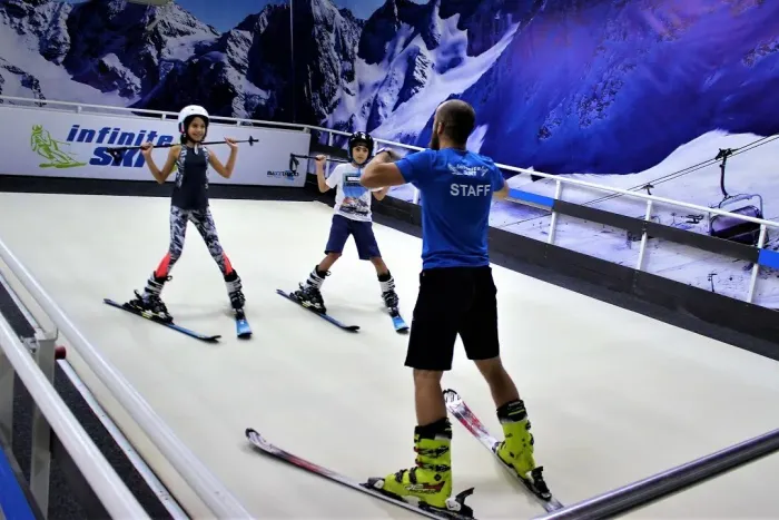 Here's an awesome activity to do with your family! Kids and adults alike can learn how to ski or snowboard in the safest and fastest way at Infinite Ski, the first ever Maxxtracks indoor skiing and snowboarding center in the Middle East. The speed of the belt and the angle of the slope are adjustable to suit the skill of every skier!
